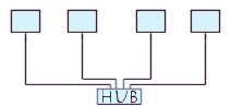 La ramification se fait à l’aide de boîtiers appelés hubs (ou concentrateurs), comportant une seule entrée et plusieurs sorties. Certains sont actifs (fournissant de l’énergie électrique), d’autres passifs.