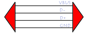 Ainsi, dès 1995, le standard USB a été élaboré. Il propose deux modes de communication (12 Mbps en mode haute vitesse et 1.5 Mbps à basse vitesse) pour la connexion d’une grande variété de périphériques. L’architecture USB a pour caractéristique de fournir l’alimentation électrique aux périphériques qu’elle relie. Elle utilise pour cela un câble composé de quatre fils (la masse GND, l’alimentation VBUS et deux fils de données appelés D- et D+).